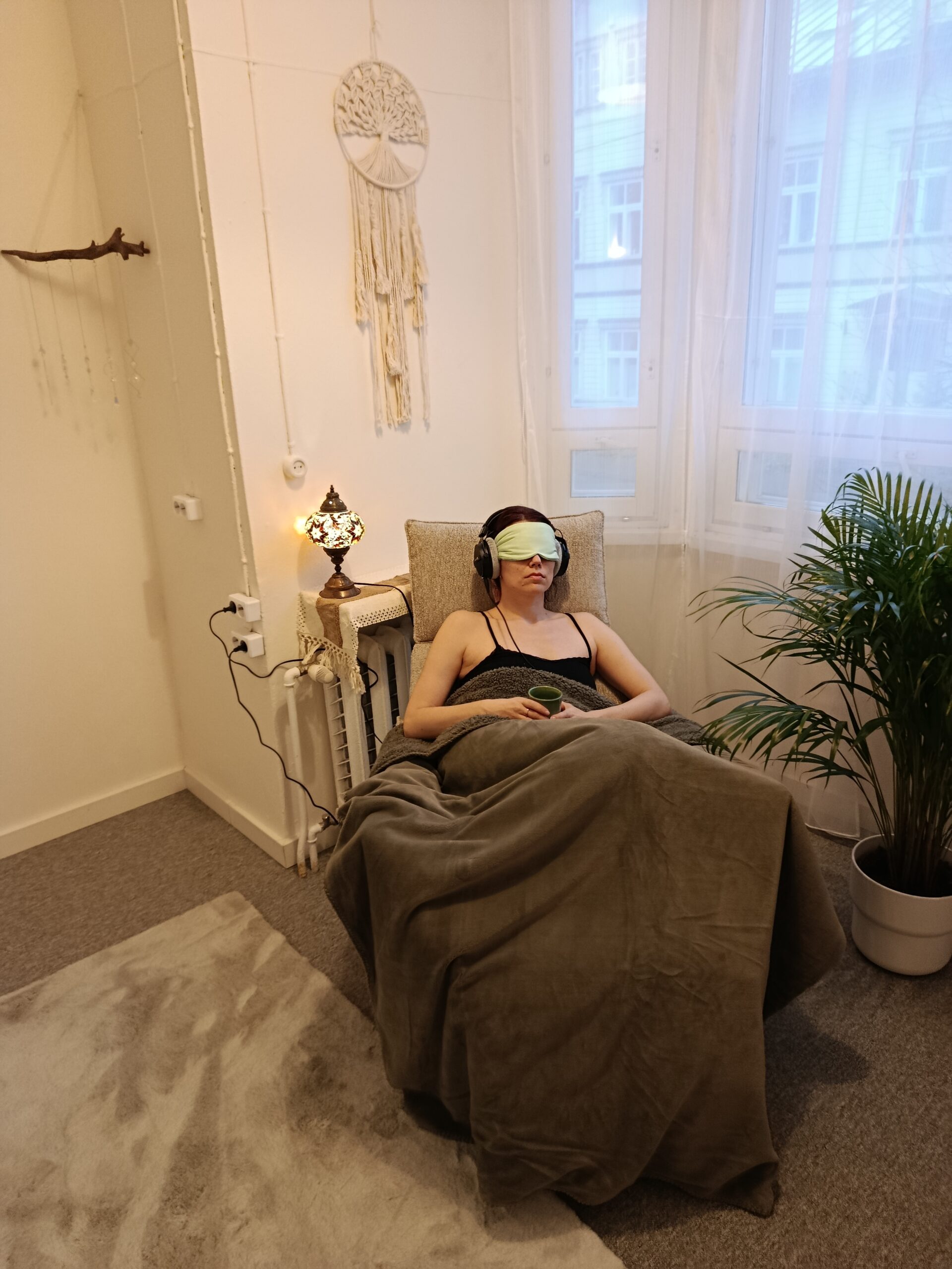 Rahulik atmosfäär, soojad toonid, pehmed matid ja padjad ning küünlavalgus loovad turvalise ruumi lõõgastumiseks ja keskendumiseks.